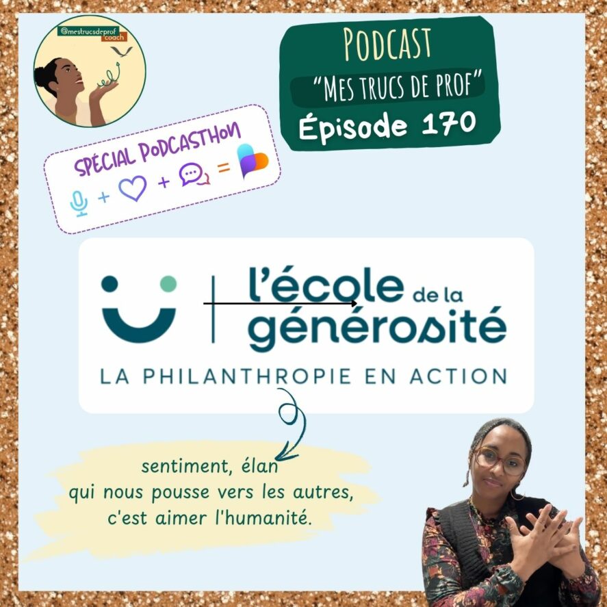 Bienvenue à toutes et à tous dans ce nouvel épisode spécial Podcasthon 2025, au cours duquel vous découvrirez l’association l’école de la générosité qui promeut la philantropie et la générosité en mettant en lien les enseignant·es, leurs élèves et des associations pour créer des projets d’engagement solidaire.